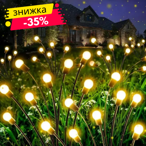 Нові модернізовані зовнішні ліхтарі-світлячки на сонячній енергії - погойдуються на вітрі.